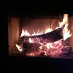 También incluye un patio y una zona de estar, así como vistas al jardín. Los elementos interiores incluyen un sofá y una chimenea de piedra. Hay toallas de baño para la comodidad de los huéspedes.