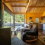 Wood Cabin By The River - For Nature Lovers tiene una pequeña cocina con un horno de microondas, nevera y utensilios de cocina. El Aeropuerto Kalamata se ubica a 95 km de este chalet. La zona ofrece piragüismo, equitación y esquí.